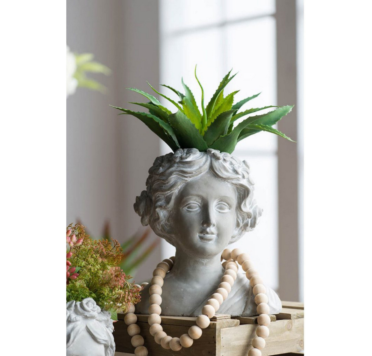 Regal elegance has never looked better, and this classic bust planter boasts old-world charm. Complete with a whitewash stone finish, this head planter is detailed with a floral wreath and toga. It looks amazing with trailing plants to elevate the lush foliage of the garden.