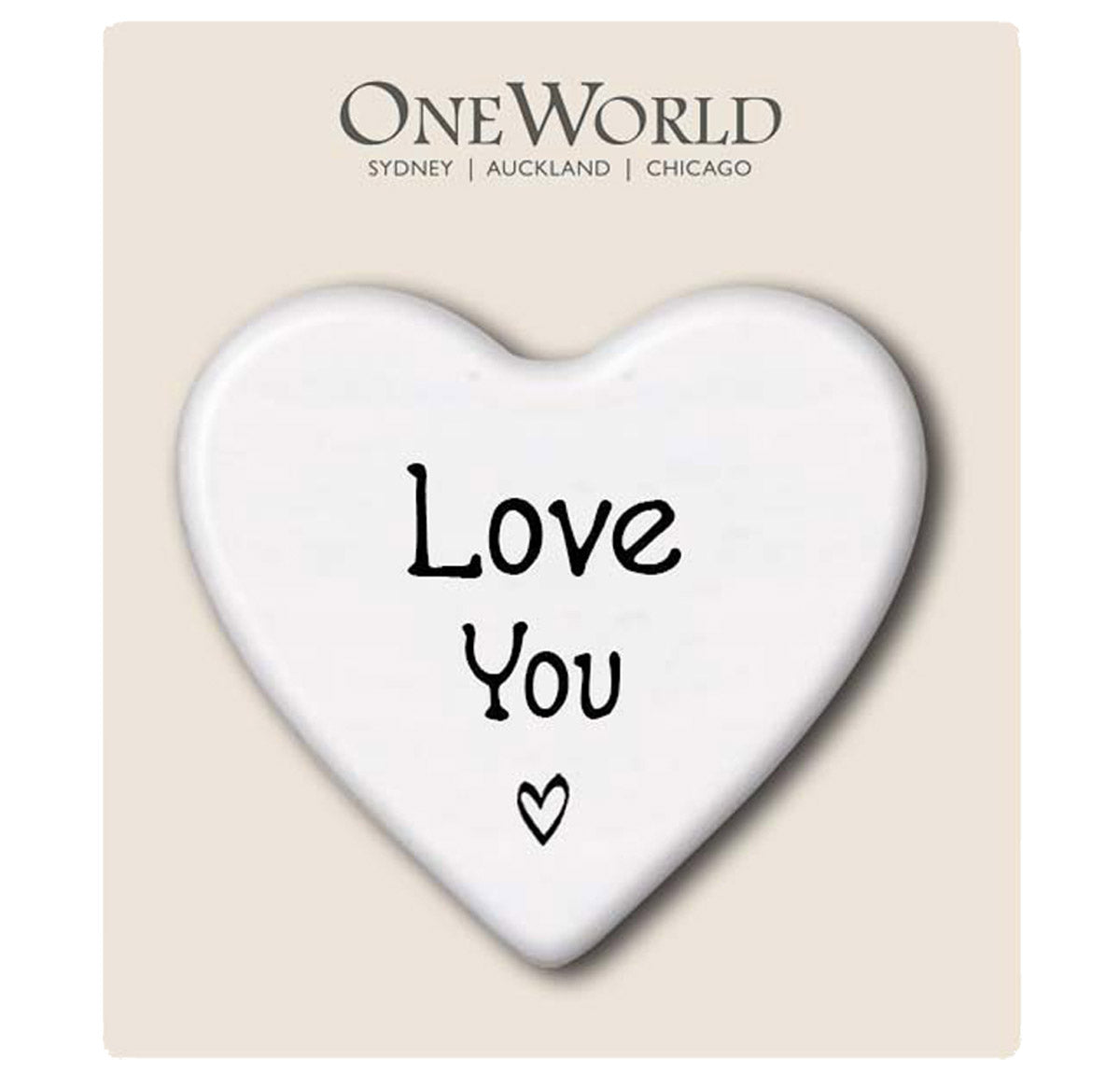 A stunning handmade refrigerator magnet. The ceramic is beautifully cut into a heart shape with 'Love You' engraved in the centre.