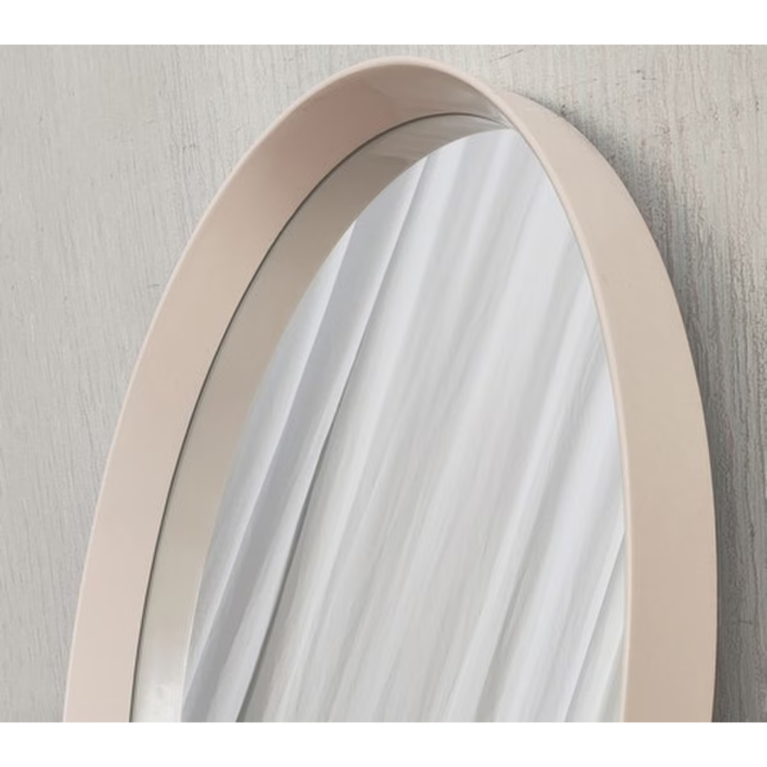 Bring soft, timeless elegance to your space with this cream oval mirror. Its smooth oval shape and warm cream frame create a refined look that complements both modern and classic interiors. Perfect for hallways, bedrooms, or living areas.